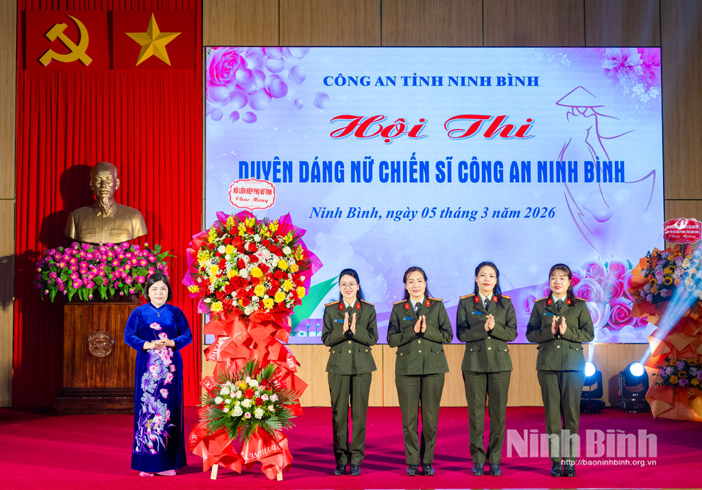 Sáng 5/3, Công an tỉnh Ninh Bình tổ chức Hội thi “Duyên dáng nữ chiến sĩ Công an Ninh Bình” năm 2026. Dự Hội thi có lãnh đạo Công an tỉnh, Hội LHPN tỉnh cùng đông đảo cán bộ, chiến sĩ toàn lực lượng.