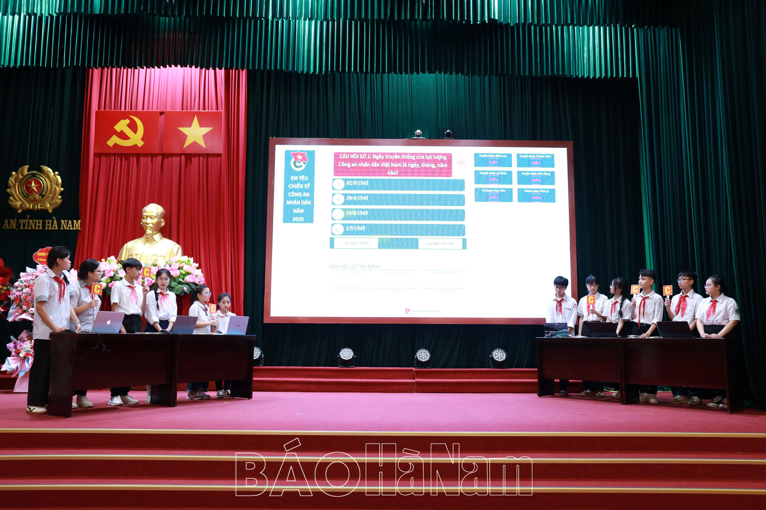 Ở phần thi kiến thức, các đội tham gia trả lời 10 câu hỏi trắc nghiệm hiện trên máy tính. Sau đó, tham gia phần thi hùng biện với các chủ đề về vai trò của Công an nhân dân trong công tác bảo đảm an toàn giao thông học đường, phòng chống xâm hại tình dục trẻ em, giáo dục ý thức pháp luật cho học sinh, phòng, chống tội phạm vị thành niên; phòng chống thiên tai; lịch sử xây dựng, chiến đấu và trưởng thành của lực lượng Công an nhân dân.