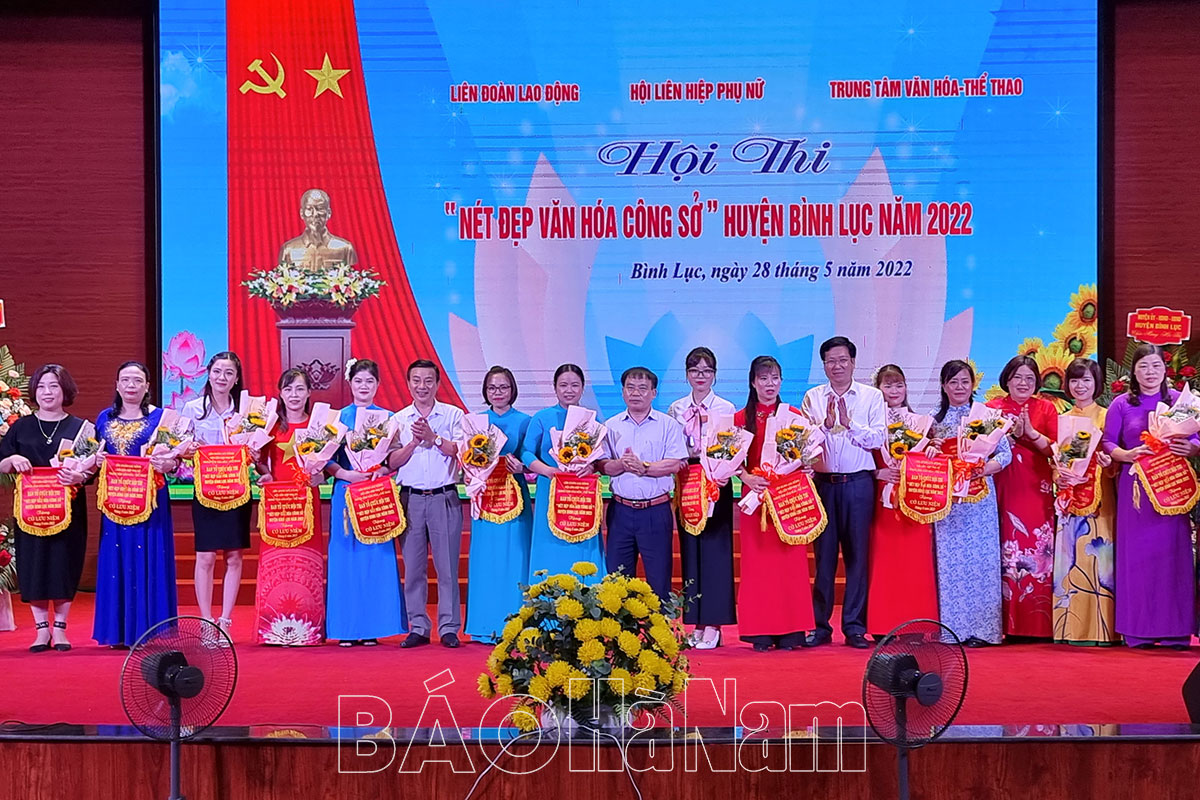 Thiết thực kỷ niệm 132 năm ngày sinh Chủ tịch Hồ Chí Minh, chào mừng thành công Đại hội đại biểu Phụ nữ toàn quốc lần thứ XIII, nhiệm kỳ 2022-2027 và hưởng ứng Tháng Công nhân năm 2022, sáng 28/5, Liên đoàn Lao động huyện Bình Lục phối hợp với Hội Liên hiệp Phụ nữ (LHPN), Trung tâm Văn hóa-Thông tin huyện tổ chức hội thi “Nét đẹp văn hóa công sở” trong công nhân viên chức lao động (CNVCLĐ).