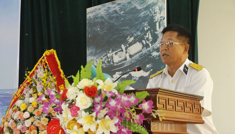 Đại diện cán bộ, hội viên Hội truyền thống đường Hồ Chí Minh trên biển tỉnh Hà Nam phát biểu tại lễ kỉ niệm.