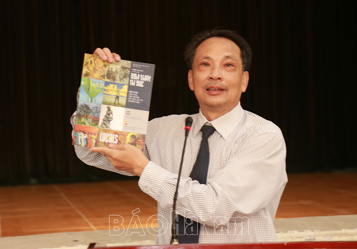 Ông Lê Minh Sơn, Chủ tịch Hội VHNT Hà Nam giới thiệu cuốn sách tại buổi ra mắt.