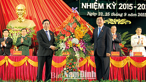 Hôm qua, 23-9-2015, tại Nhà văn hoá 3-2 (TP Nam Định) đã khai mạc trọng thể Đại hội đại biểu Đảng bộ tỉnh lần thứ XIX (nhiệm kỳ 2015-2020). Thay mặt Bộ Chính trị, đồng chí Phạm Quang Nghị, Ủy viên Bộ Chính trị, Bí thư Thành uỷ Hà Nội đã đến dự và chỉ đạo Đại hội. Dự đại hội có các đồng chí: Nguyễn Văn An, nguyên Uỷ viên Bộ Chính trị, nguyên Chủ tịch Quốc hội, nguyên Bí thư Tỉnh ủy; Vũ Văn Ninh, Ủy viên Trung ương Đảng, Phó Thủ tướng Chính phủ; Phạm Bình Minh, Ủy viên Trung ương Đảng, Phó Thủ tướng Chính phủ, Bộ trưởng Bộ Ngoại giao; Đinh La Thăng, Ủy viên Trung ương Đảng, Bộ trưởng Bộ GTVT; Nguyễn Văn Quynh, Ủy viên Trung ương Đảng, Phó Trưởng Ban Tổ chức Trung ương; Phạm Hồng Hà, Ủy viên Trung ương Đảng, Thứ trưởng Thường trực Bộ Xây dựng, nguyên Bí thư Tỉnh ủy Nam Định; Trần Hồng Hà, Ủy viên dự khuyết Trung ương Đảng, Thứ trưởng Bộ TN và MT; Đặng Quân Thụy, nguyên Ủy viên Trung ương Đảng, nguyên Phó Chủ tịch Quốc hội. Dự Đại hội còn có các đồng chí nguyên Ủy viên Trung ương Đảng, lãnh đạo các Ban Xây dựng Đảng của Trung ương, các ban, bộ, ngành Trung ương, Bộ Tư lệnh Quân khu 3; đại diện Thành uỷ Hà Nội, Tỉnh uỷ Hưng Yên và một số Tập đoàn kinh tế; Hội đồng hương Nam Định tại Hà Nội và Thành phố Hồ Chí Minh.