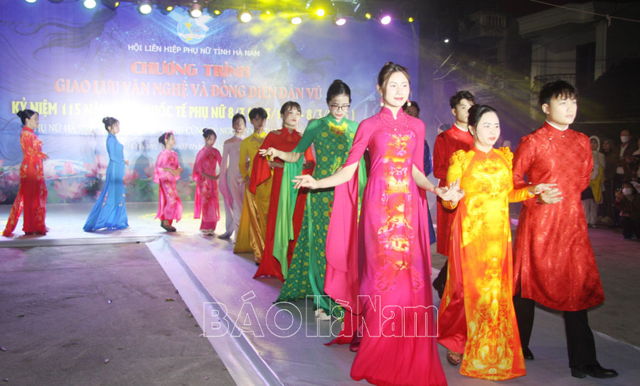 Tham gia đêm giao lưu có hơn 1 nghìn cán bộ, hội viên phụ nữ đến từ các đơn vị trên địa bàn tỉnh. Các đơn vị đã mang đến những tiết mục văn nghệ và dân vũ đặc sắc ca ngợi Đảng, Bác Hồ, quê hương, đất nước, người phụ nữ Việt Nam... Cùng với đó, là màn trình diễn ào dài truyền thống đã góp phần chuyển tải thông điệp ý nghĩa về bảo tồn bản sắc văn hóa gắn với trang phục truyền thống của quê hương Hà Nam, dân tộc.