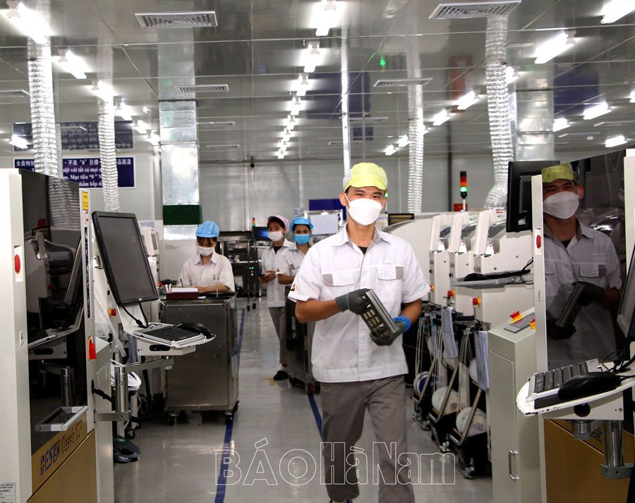 Công nhân công ty TNHH Hua Zhuang Electronics Việt Nam- KCN Đồng Văn II vui vẻ gắn bó với công việc và thu nhập do doanh nghiệp chi trả thời gian qua.
