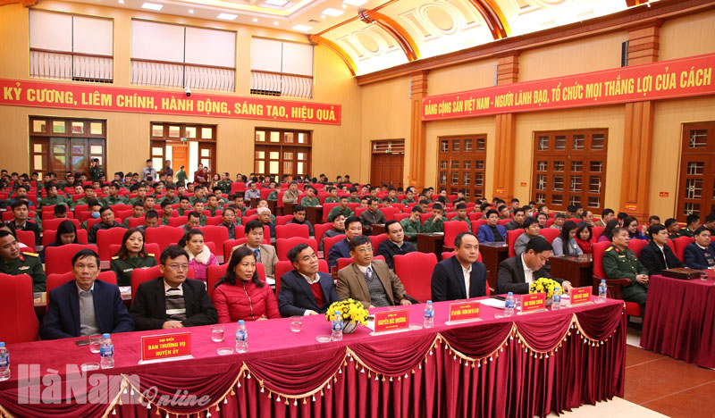 Toàn cảnh lễ đón nhận công dân hoàn thành nghĩa vụ quân sự trở về địa phương của huyện Lý Nhân