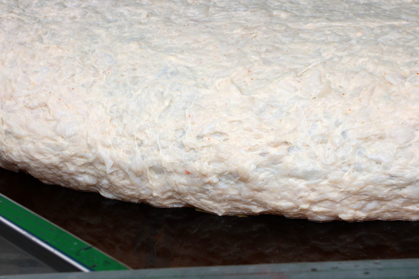 Sau khi mực tươi được giã tay, phần thịt sẽ được đắp lên khung tạo hình. Ảnh: P.C