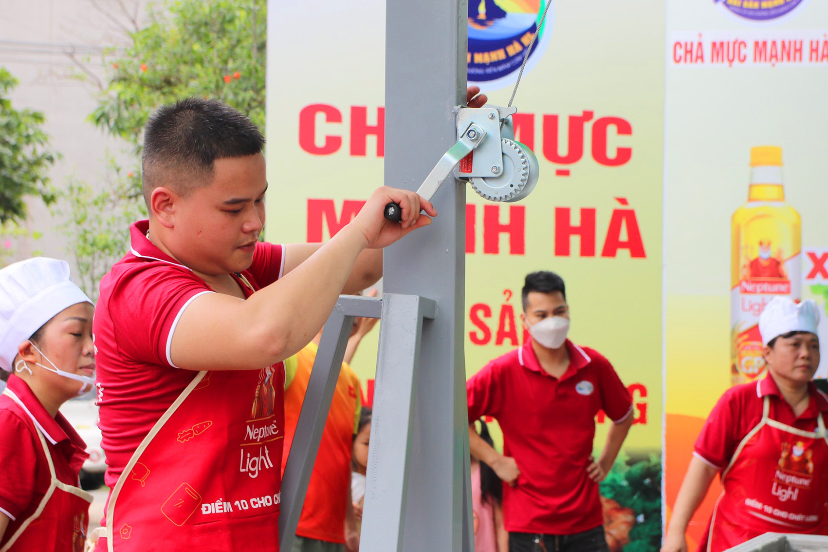 "Tính từ khi mua nguyên liệu đến khi hoàn thành, số tiền tôi bỏ ra là hơn 100 triệu để làm ra chiếc chả mực 2 tạ này", anh Hà bật mí.