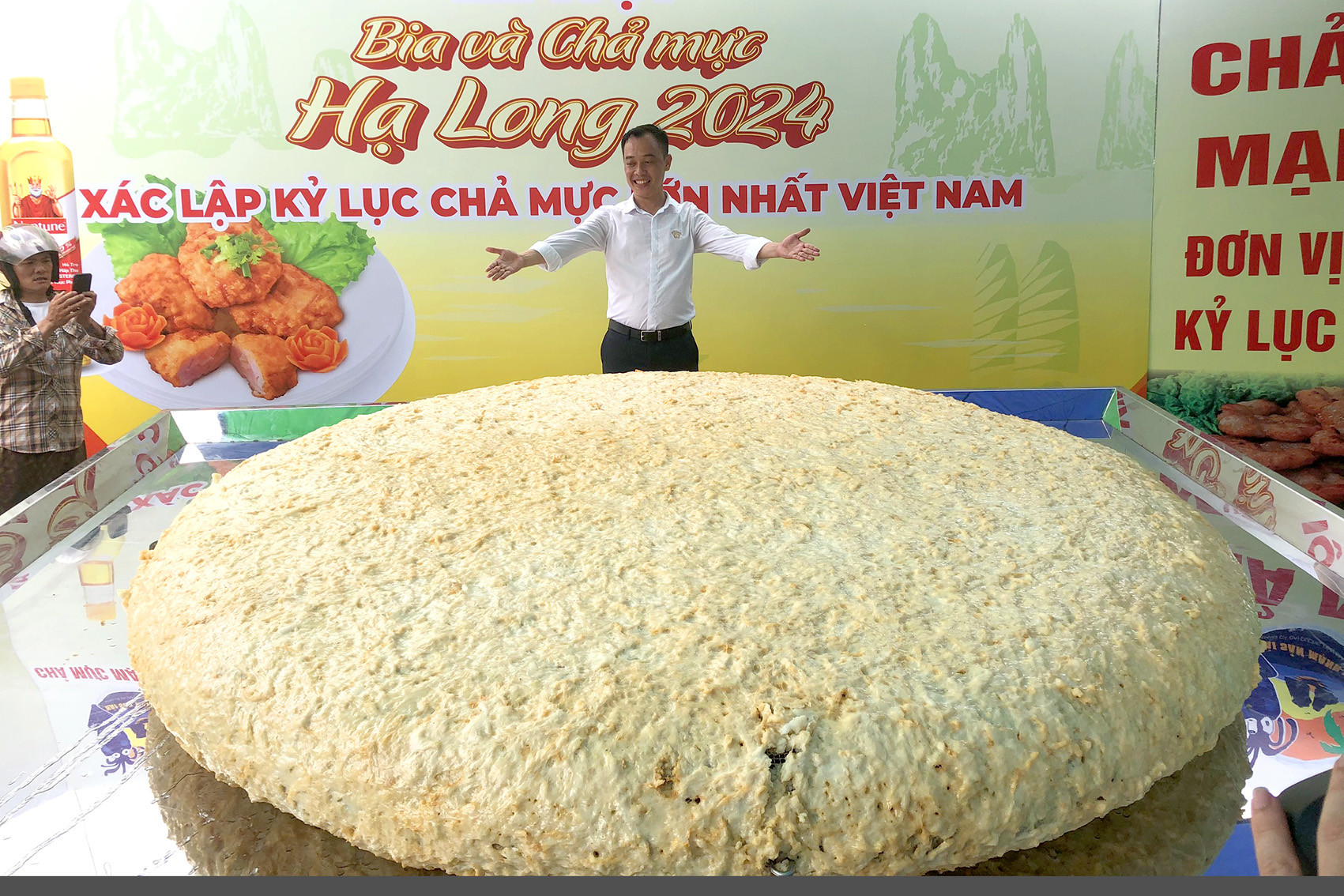 Trước thềm diễn ra lễ hội Bia và chả mực tại TP Hạ Long, Quảng Ninh, anh Nguyễn Mạnh Hà (chủ một cơ sở chả mực) đã cùng hơn 20 người làm ra chiếc chả mực to chưa từng thấy.