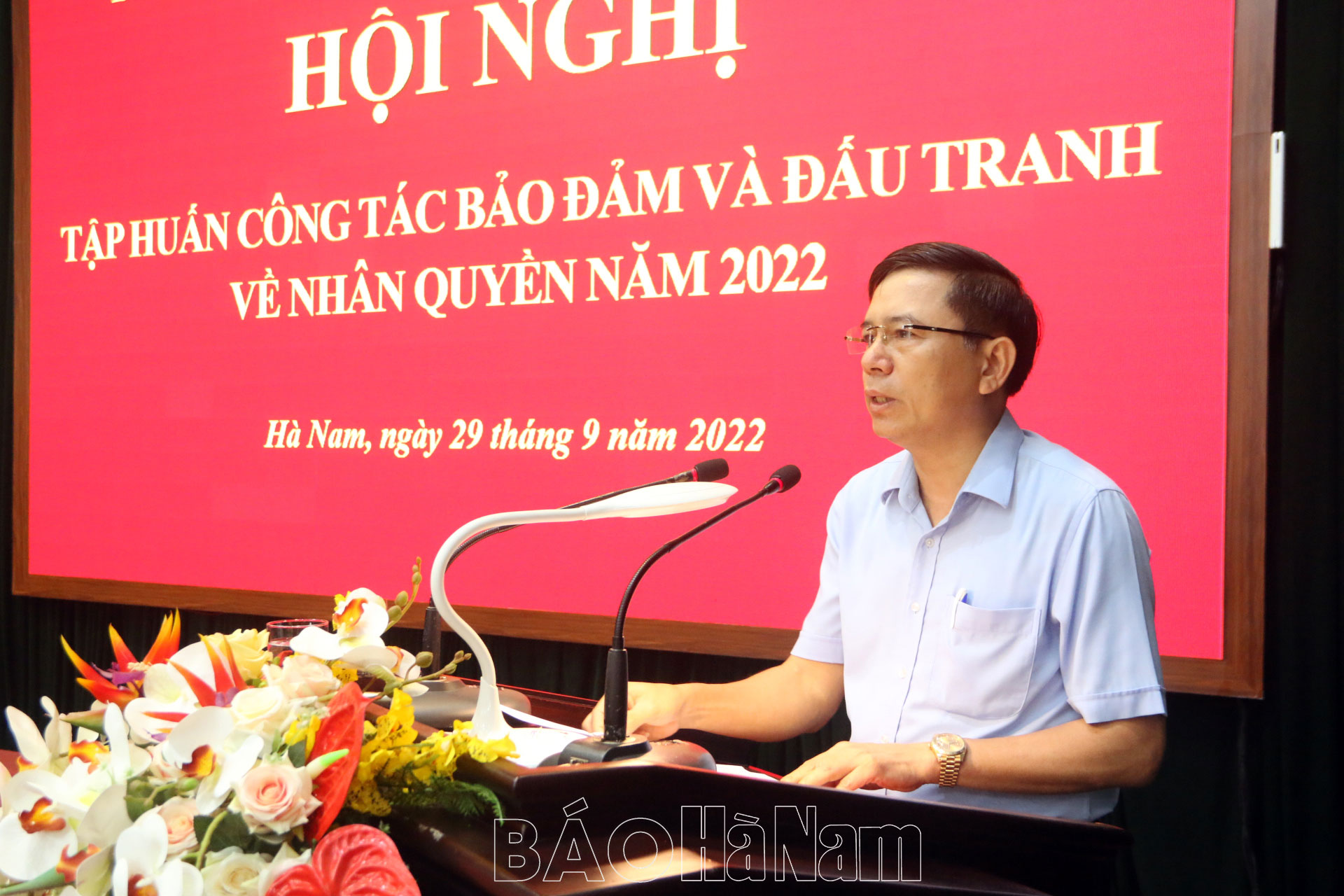 Sáng 29/9, Ban Chỉ đạo (BCĐ) về nhân quyền tỉnh tổ chức hội nghị tập huấn công tác bảo đảm, đấu tranh về nhân quyền năm 2022. Dự hội nghị có các đồng chí: Thiếu tướng Nguyễn Văn Kỷ, Phó Cục trưởng Cục Đối ngoại (Bộ Công an), Phó chánh Văn Phòng Thường trực BCĐ nhân quyền Chính phủ; Nguyễn Hải Lưu, Phó Vụ trưởng Vụ Tổ chức quốc tế (Bộ Ngoại giao); Trần Xuân Dưỡng, Tỉnh ủy viên, Phó Chủ tịch UBND tỉnh, Trưởng BCĐ về nhân quyền tỉnh; lãnh đạo các sở, ban, ngành, đoàn thể, các huyện, thị xã, thành phố và các xã, phường, thị trấn trên địa bàn tỉnh.
