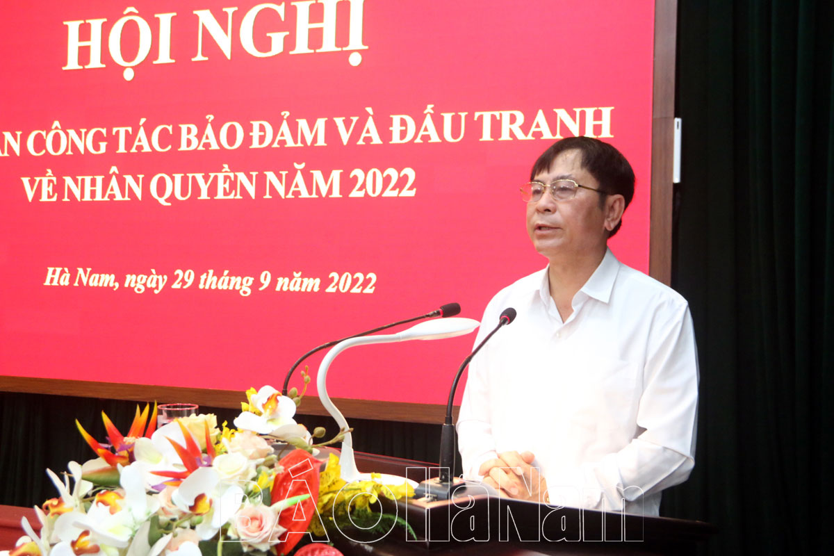 Phát biểu tại hội nghị, đồng chí Phó Chủ tịch UBND tỉnh Trần Xuân Dưỡng nhấn mạnh: Thời gian qua, công tác bảo đảm và đấu tranh về nhân quyền trên địa bàn tỉnh đã được quan tâm, thực hiện hiệu quả. Cấp ủy Đảng, chính quyền các cấp đã triển khai thực hiện có hiệu quả các chính sách an sinh xã hội, giải quyết tốt các nhu cầu, nguyện vọng chính đáng của nhân dân, nhất là những vấn đề liên quan đến tôn giáo, đất đai, khiếu kiện, khiếu nại, tố cáo, phản ánh, kiến nghị, cải cách thủ tục hành chính. Do đó, tình hình an ninh chính trị, trật tự an toàn xã hội trên địa bàn tỉnh cơ bản ổn định, không để phát sinh, phức tạp bị các thế lực thù địch lợi dụng vấn đề nhân quyền để tuyên truyền, chống phá Đảng, Nhà nước, phục vụ có hiệu quả nhiệm vụ phát triển kinh tế - xã hội ở địa phương.