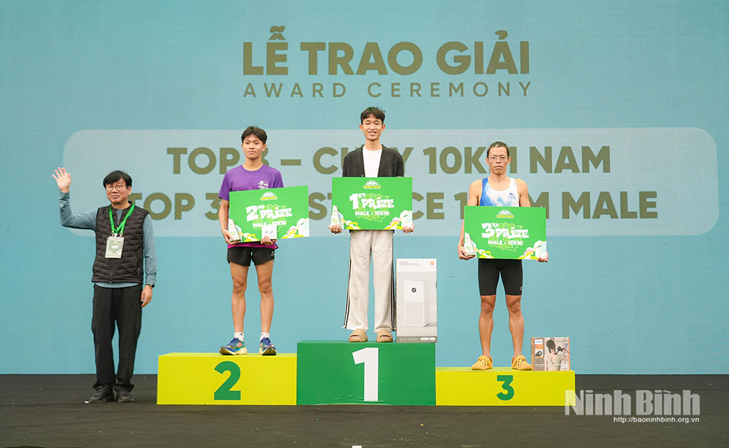 Ban Tổ chức trao giải thưởng cho các vận động viên có thành tích tốt trong giải chạy.