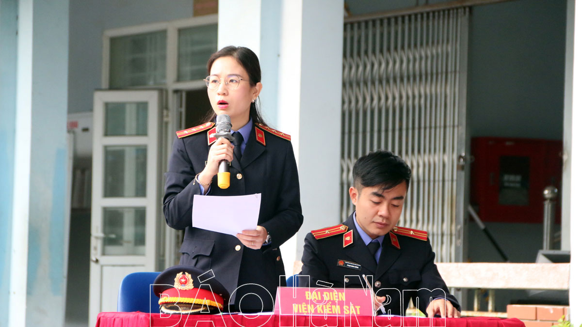 Đại diện Viện Kiểm sát nhân dân thành phố Phủ Lý đọc bản cáo trạng tại Phiên tòa giả định.
