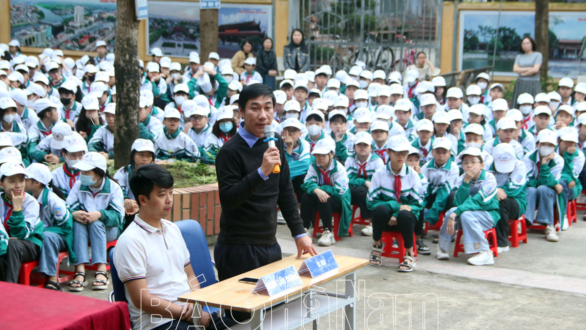 Đông đảo các em học sinh trường THCS Lương Khánh Thiện hào hứng tham gia chương trình phiên tòa giả định