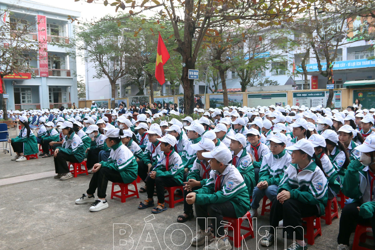 Đông đảo cán bộ, giáo viên, học sinh trường THCS Lương Khánh Thiện tham dự phiên tòa giả định.