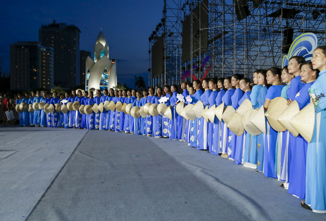 | Hơn 6.000 tà áo dài rực rỡ sắc màu tô thắm phố biển. |
