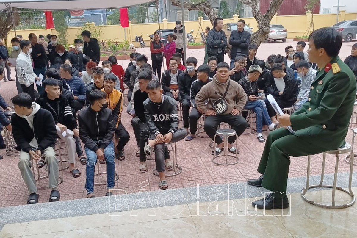 Đông đảo thanh niên trong độ tuổi ở Lý Nhân đi khám sức khoẻ tuyển quân đúng thời gian theo lệnh gọi.