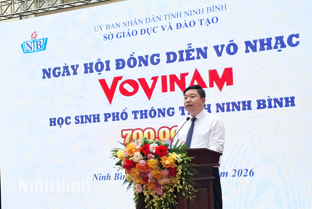 Sáng 27/3, tại Trường THPT Đinh Tiên Hoàng (phường Hoa Lư), Sở Giáo dục và Đào tạo tổ chức chương trình “Ngày hội đồng diễn Võ nhạc Vovinam học sinh phổ thông”.