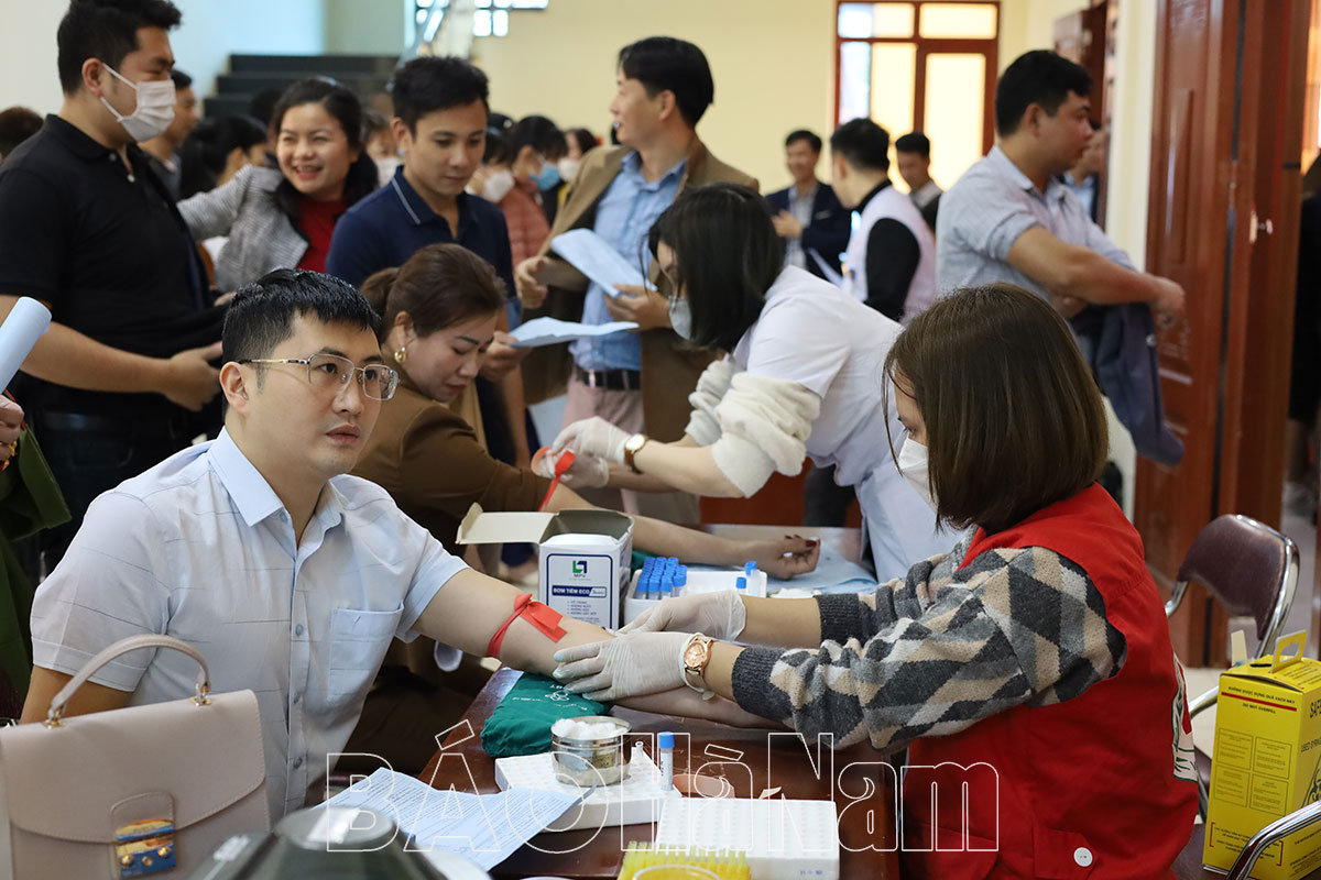 Với thông điệp "Hiến máu đầu xuân - Nhân lên hạnh phúc", ngày hội thu hút sự tham gia của hơn 700 tình nguyện viên là cán bộ, công chức, viên chức thuộc huyện và các xã, thị trấn, trường học; lực lượng vũ trang cùng đông đảo nhân dân các địa phương.