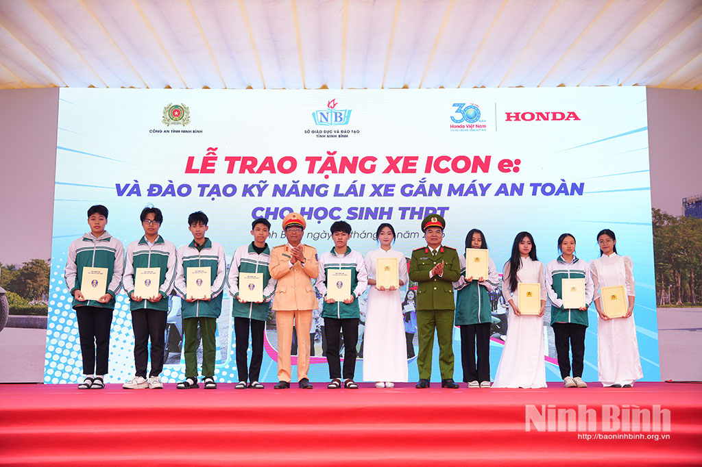 Tại buổi lễ, HVN đã trao tặng 12 xe gắn máy điện Honda ICON e: cho tỉnh Ninh Bình, mở đầu cho chuỗi chương trình trên toàn quốc, tiếp nối nỗ lực lan tỏa văn hóa giao thông an toàn đến thế hệ trẻ.