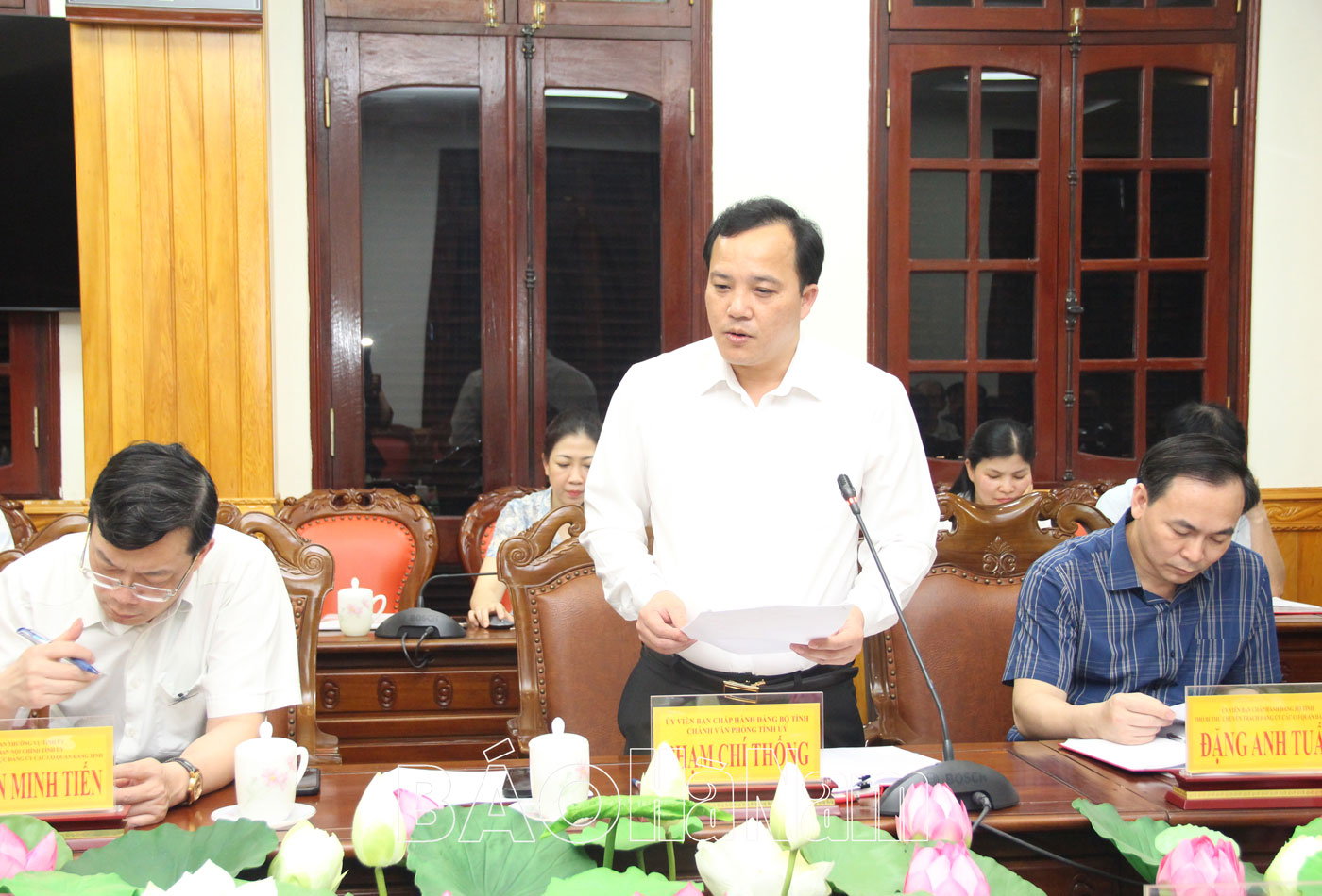 Trên cơ sở ý kiến đóng góp của các thành viên BCĐ, đồng chí Bí thư Tỉnh ủy Trương Quốc Huy đề nghị Văn phòng Tỉnh ủy tiếp thu đầy đủ ý kiến đóng góp để hoàn thiện các dự thảo; gửi thông báo cho bí thư các huyện ủy, thị ủy, thành ủy, đảng ủy về kế hoạch thực hiện phát triển khoa học công nghệ, đổi mới sáng tạo và chuyển đổi số để chủ động đề xuất các nội dung công việc, mua sắm trang thiết bị phục vụ thực hiện nhiệm vụ.