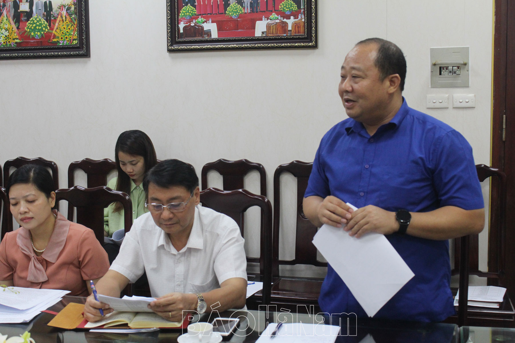 Đồng chí Lê Hồng Kỳ, TUV, Tổng Biên tập Báo Hà Nam, Phó Trưởng Khối thi đua báo cáo dự thảo Quết định thành lập Ban Tổ chức và Điều lệ giải.