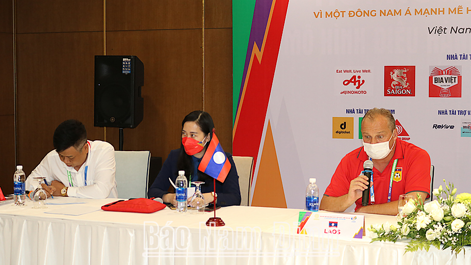 áng 6-5, tại Khách sạn Nam Cường (thành phố Nam Định), Ban tổ chức SEA Games 31 đã tổ chức họp báo giữa phóng viên các cơ quan thông tấn, báo chí trong và ngoài nước với 5 đội tuyển U23 bóng đá nam bảng B: Thái Lan, Malaysia, Singapore, Lào, Campuchia.