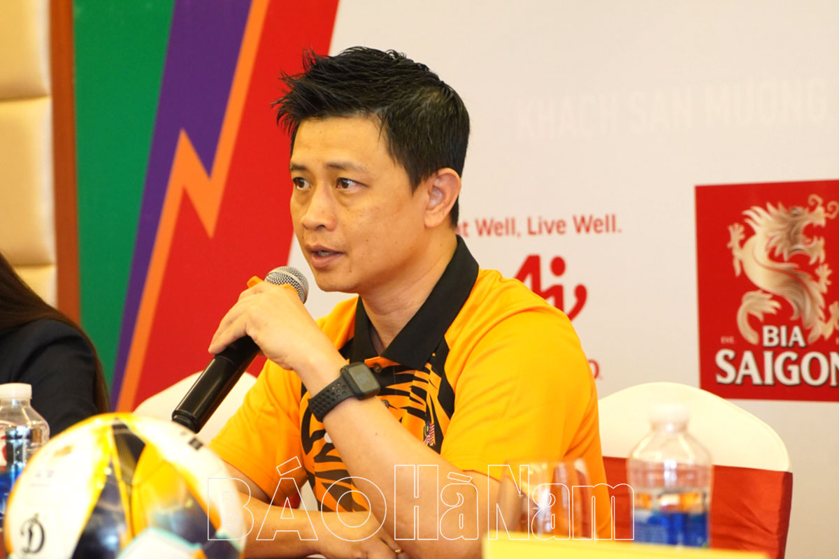 HLV trưởng đội tuyển Futsal Việt Nam trả lời câu hỏi của báo chí.