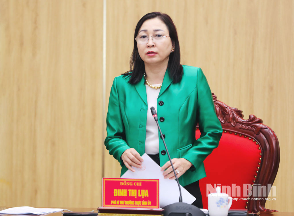 Đồng chí Đinh Thị Lụa, Phó Bí thư Thường trực Tỉnh ủy phát biểu kết luận buổi họp báo.