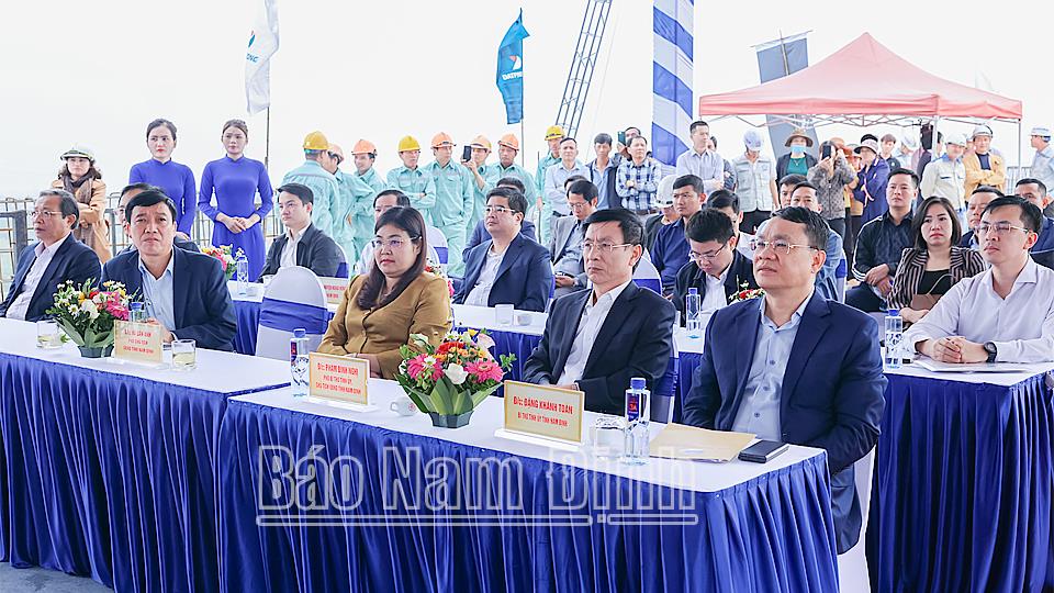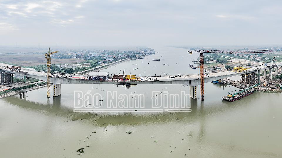 Tại buổi lễ, các đồng chí: Đặng Khánh Toàn, Bí thư Tỉnh ủy Nam Định; Đoàn Minh Huấn, Bí thư Tỉnh ủy Ninh Bình; Phạm Đình Nghị, Phó Bí thư Tỉnh ủy, Chủ tịch UBND tỉnh Nam Định; Hà Lan Anh, Phó Chủ tịch UBND tỉnh Nam Định; Nguyễn Cao Sơn, Phó Chủ tịch UBND tỉnh Ninh Bình và lãnh đạo các sở, ngành 2 tỉnh Ninh Bình, Nam Định đã tiến hành nghi thức hợp long cầu vượt sông Đáy; tặng hoa chúc mừng đơn vị thi công cầu vượt sông Đáy.