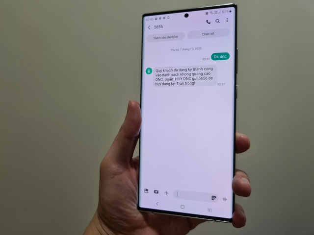 Để đăng ký số điện thoại di động của mình vào danh sách không nhận bất kỳ tin nhắn hoặc cuộc gọi quảng cáo nào, bạn đọc có thể gửi tin nhắn với nội dung: DK DNC gửi đến đầu số 5656.