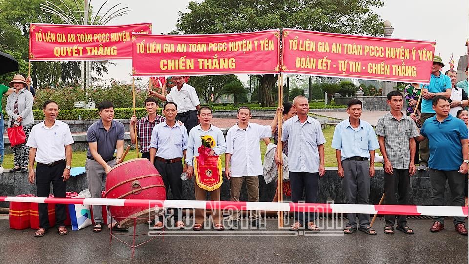 | Người dân địa phương tuyên truyền, cổ động trong Hội thi “Tổ liên gia an toàn phòng cháy, chữa cháy” tỉnh Nam Định năm 2024. |