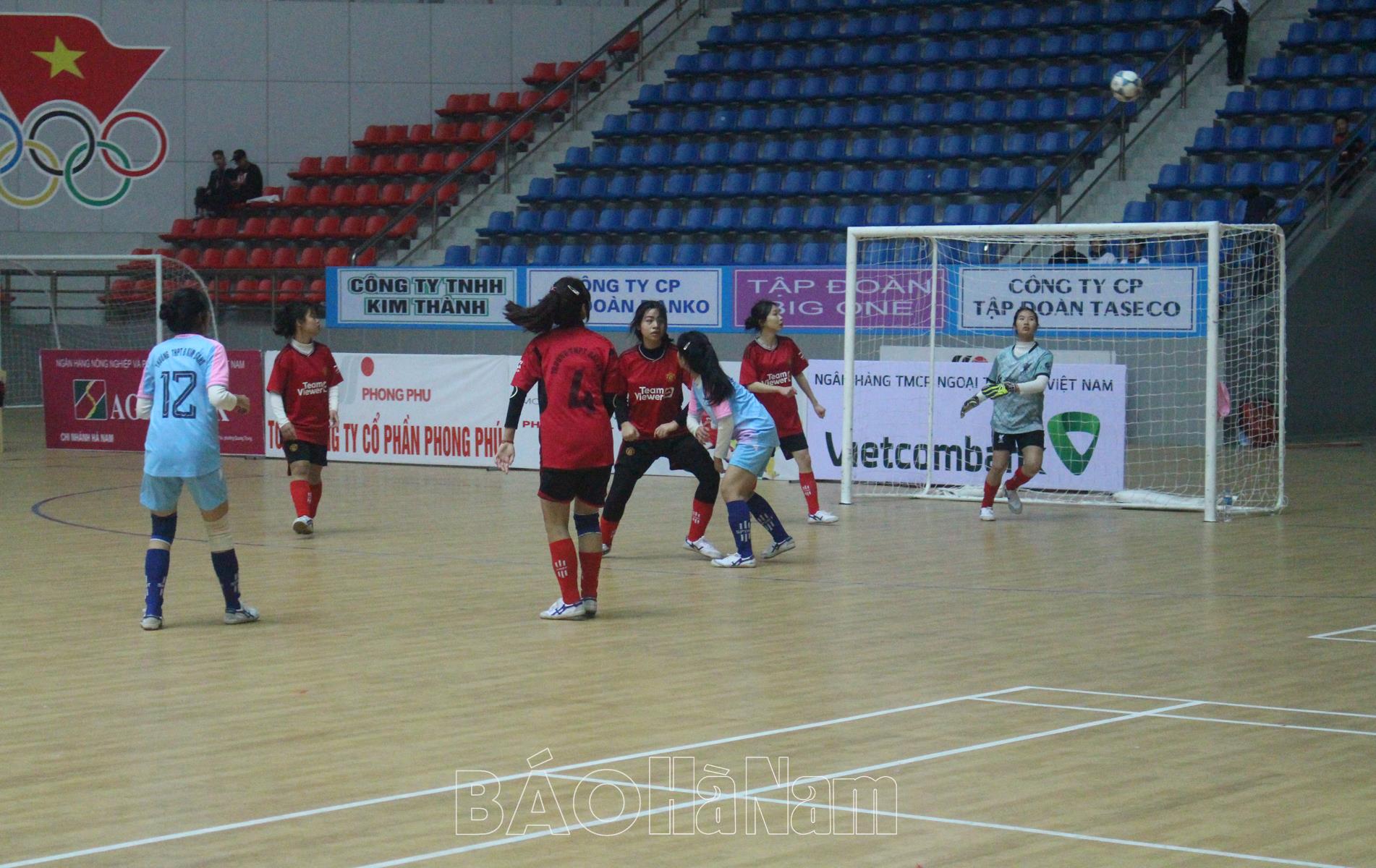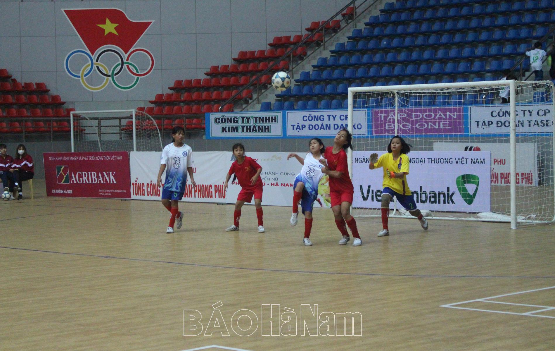 Trận chung kết giữa 2 đội bóng nội dung nữ THCS giữa Phòng GD&ĐT Duy Tiên gặp Kim Bảng.