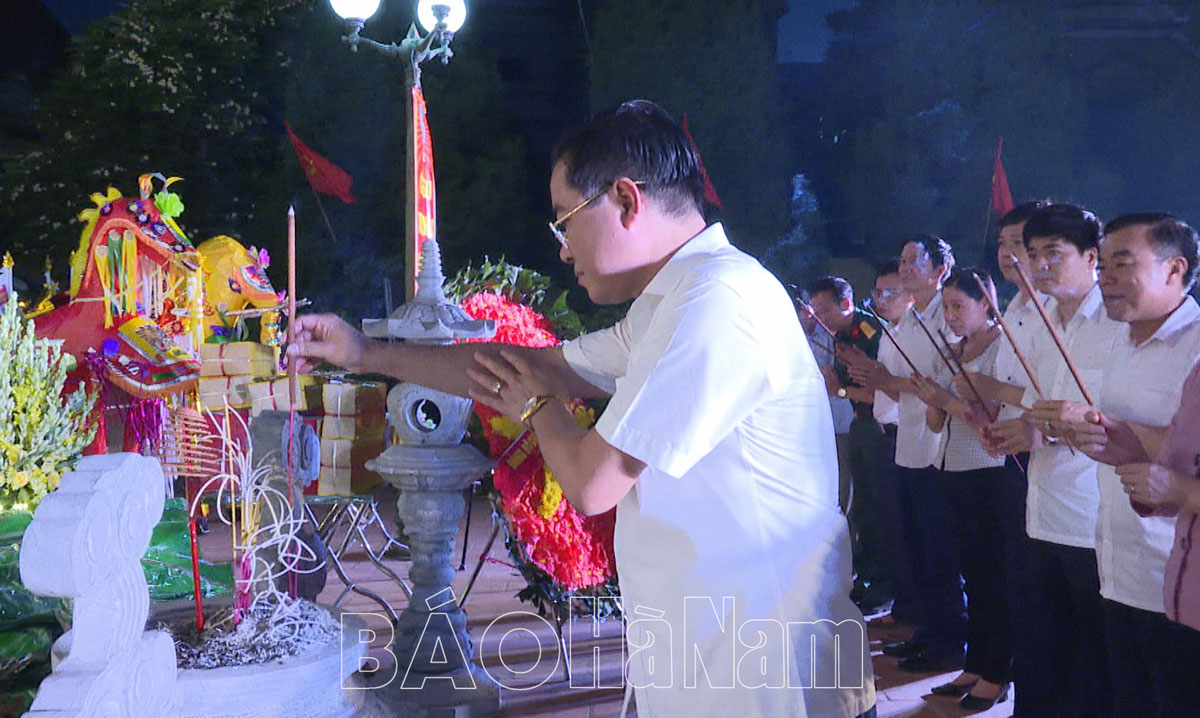 Các đồng chí lãnh đạo huyện Lý Nhân dâng hương tưởng niệm các Anh hùng liệt sĩ.