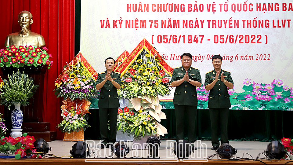 gày 4-6, Huyện ủy, HĐND, UBND huyện Nghĩa Hưng tổ chức Lễ đón nhận Huân chương Bảo vệ Tổ quốc hạng Ba và kỷ niệm 75 năm Ngày truyền thống lực lượng vũ trang (LLVT) huyện (5-6-1947 - 5-6-2022). Dự buổi lễ có các đồng chí: Trung tướng Tạ Quang Khải, Phó Viện trưởng Viện kiểm sát nhân dân tối cao, Viện trưởng Viện Kiểm sát Quân sự Trung ương; Nguyễn Văn Va, Ủy viên Ban TVTU, Trưởng Ban Tổ chức Tỉnh ủy; Đại tá Lương Văn Kiểm, Ủy viên Ban TVTU, Chỉ huy trưởng Bộ CHQS tỉnh; Hà Lan Anh, TUV, Phó Chủ tịch UBND tỉnh; đại biểu Anh hùng LLVT Nhân dân; các tướng lĩnh, sĩ quan cao cấp trong Quân đội là người còn quê hương Nghĩa Hưng.