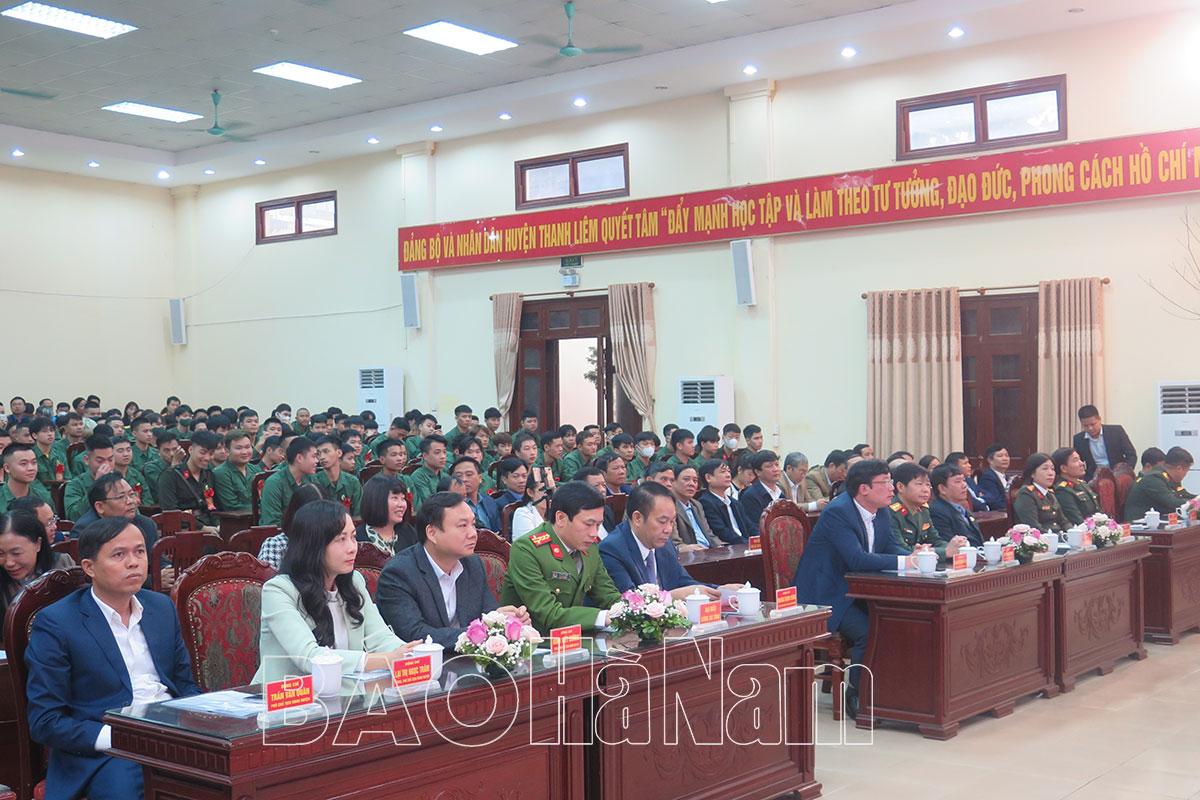 Động viên tân binh trước khi lên đường nhập ngũ, lãnh đạo huyện Thanh Liêm biểu dương tinh thần xung kích, tình nguyện của tuổi trẻ trong thực hiện Luật NVQS và nghĩa vụ công an nhân dân. Đồng thời thể hiện sự tin tưởng đối với lớp thế hệ đoàn viên, thanh niên sẵn sàng nhập ngũ năm 2023 sẽ phát huy tốt truyền thống quê hương anh hùng, hăng hái lên đường làm tròn nghĩa vụ đối với Tổ quốc, với quê hương.