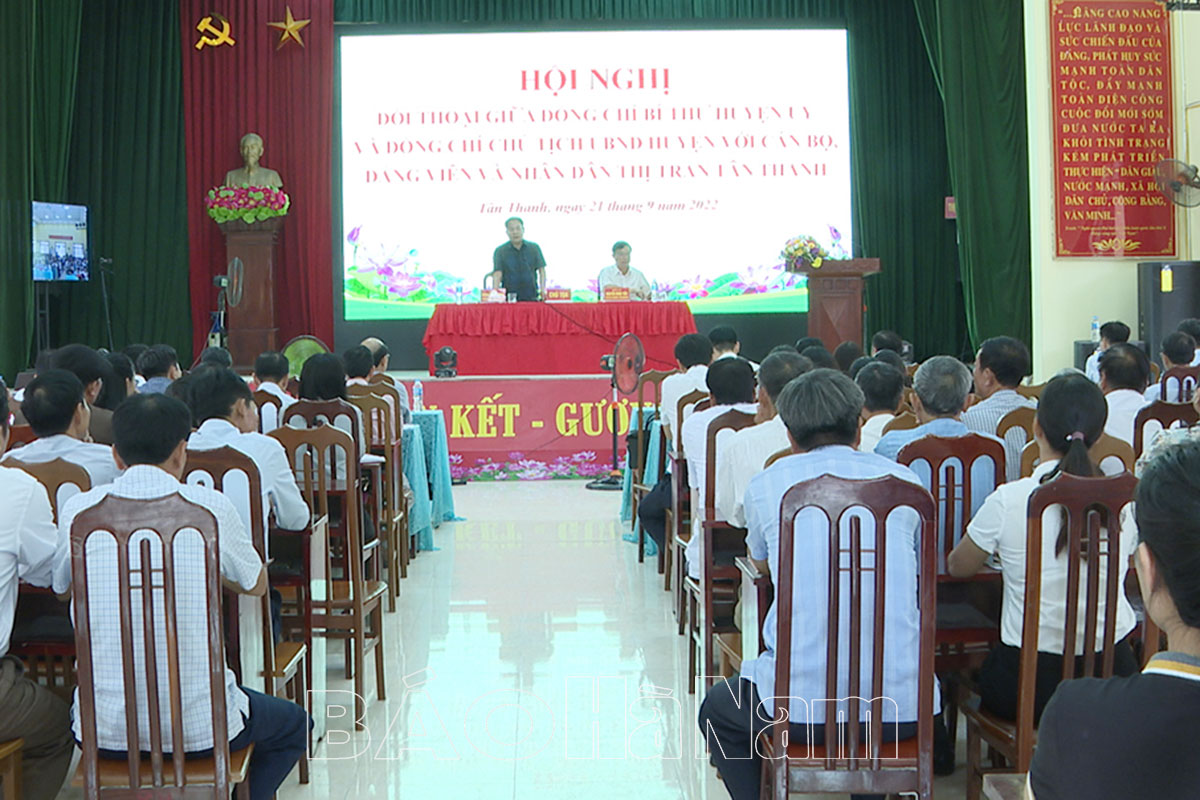 Sáng 21/9, Huyện ủy, UBND huyện Thanh Liêm tổ chức hội nghị đối thoại giữa đồng chí Bí thư Huyện ủy và đồng chí Chủ UBND huyện với cán bộ, đảng viên và nhân dân thị trấn Tân Thanh.
