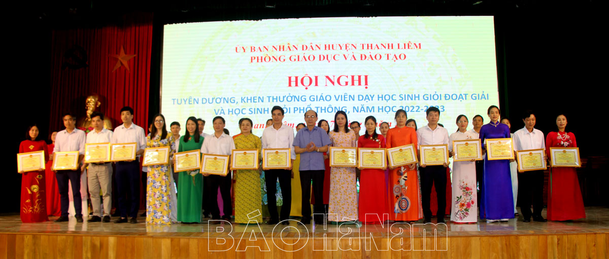 Sáng 17/5, huyện Thanh Liêm đã tổ chức hội nghị tuyên dương, khen thưởng giáo viên dạy học sinh giỏi (HSG) có giải và HSG phổ thông năm học 2022- 2023.