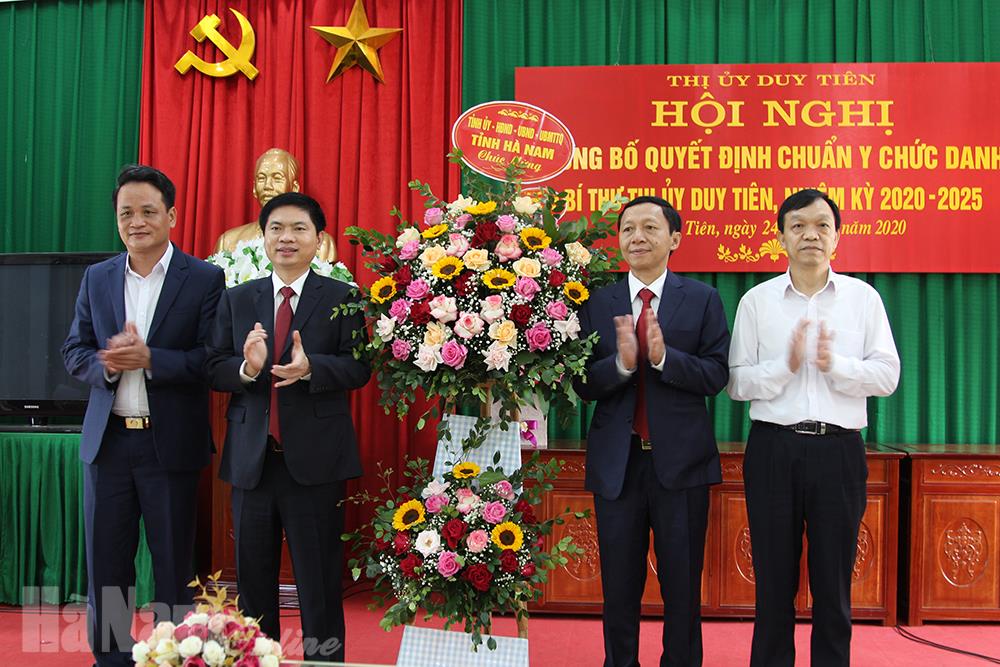 Tại hội nghị, đồng chí Đặng Đình Thoảng, Ủy viên BTV Tỉnh ủy, Trưởng Ban Tổ chức Tỉnh ủy đã công bố Quyết định của BTV Tỉnh ủy về việc chuẩn y đồng chí Phạm Hồng Thanh, Tỉnh ủy viên, Phó Bí thư Thị ủy, Chủ tịch UBND thị xã Duy Tiên giữ chức Bí thư Thị ủy Duy Tiên nhiệm kỳ 2020-2025.