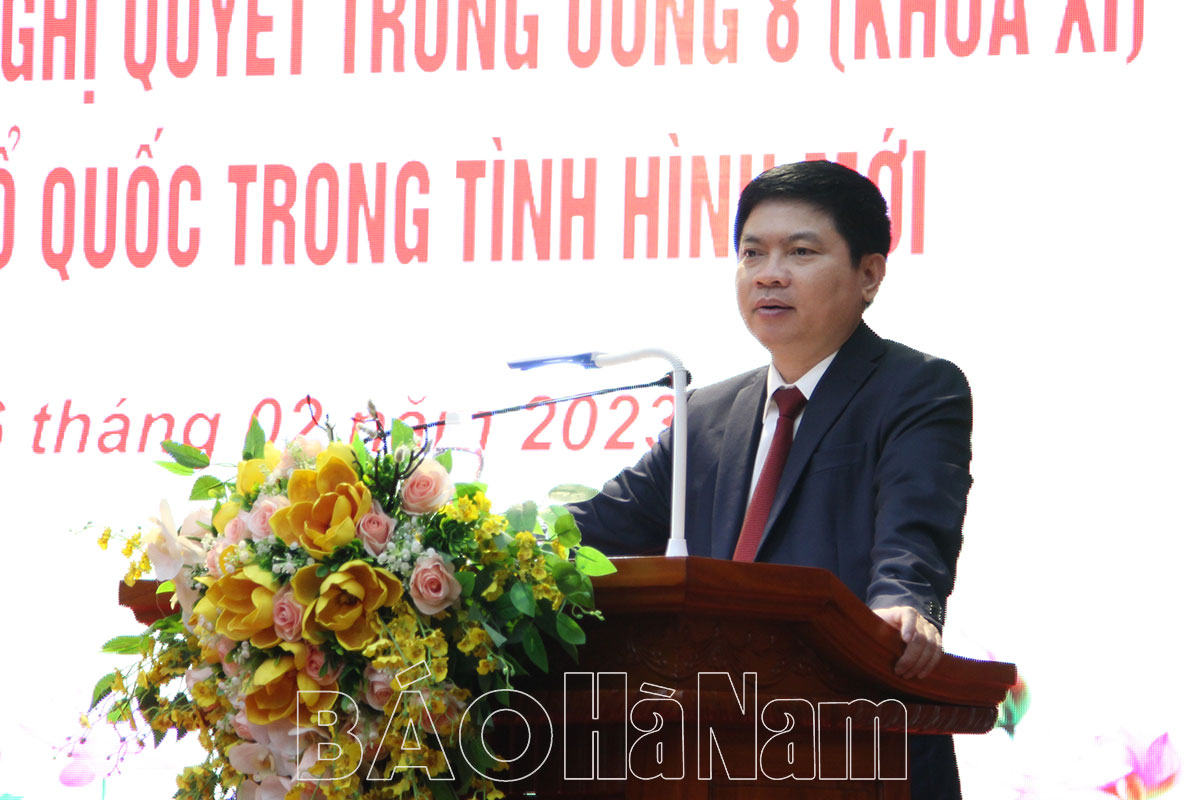 Chiều 16/2, Huyện ủy Bình Lục tổng kết 10 năm thực hiện Nghị quyết Trung ương 8 (khóa XI) về “Chiến lược bảo vệ Tổ quốc trong tình hình mới”. Dự, chỉ đạo hội nghị có các đồng chí: Trương Quốc Huy, Phó Bí thư Tỉnh ủy, Chủ tịch UBND tỉnh, Trưởng đoàn Đại biểu Quốc hội tỉnh; Đặng Đình Thoảng, Ủy viên BTV Tỉnh ủy, Trưởng Ban Tổ chức Tỉnh ủy; Đào Đình Tùng, Ủy viên BTV Tỉnh ủy, Trưởng Ban Nội chính Tỉnh ủy; lãnh đạo Văn phòng UBND tỉnh, Bộ Chỉ huy Quân sự tỉnh; Công an tỉnh.