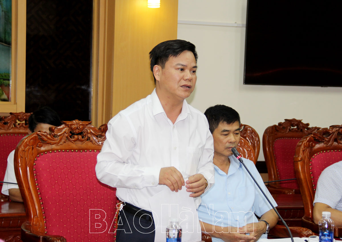 Đồng chí Đinh Văn An, Tỉnh ủy viên, Phó Trưởng ban Dân vận Tỉnh ủy phát biểu tại hội nghị tọa đàm.Đại diện lãnh đạo Hội Nông dân huyện Kim bảng phát biểu tại tọa đàm.