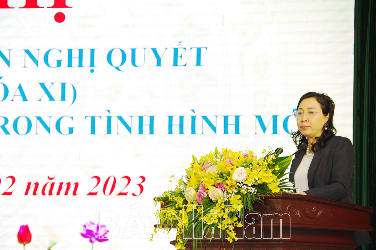 Đồng chí Đinh Thị Lụa, Phó Bí thư Thường trực Tỉnh ủy phát biểu chỉ đạo tại hội nghị.