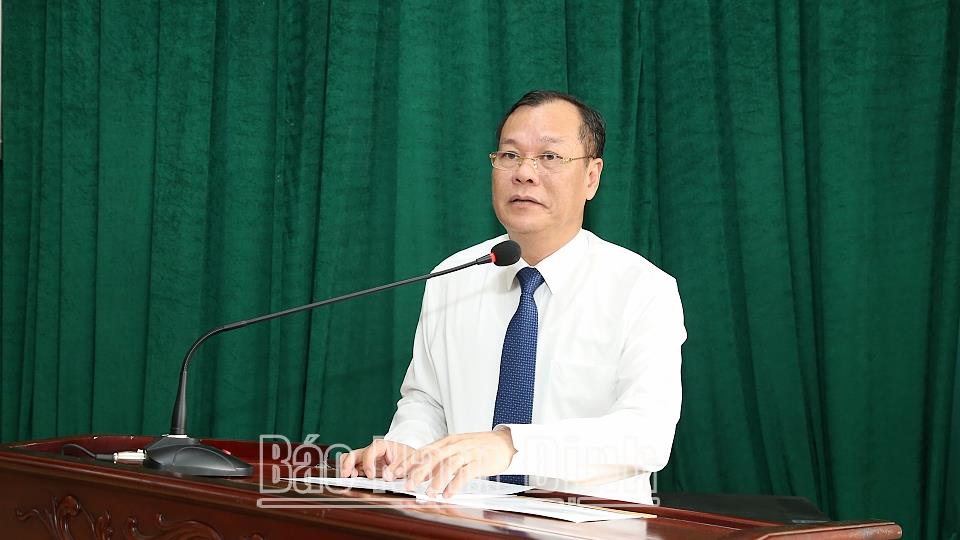 | Đồng chí Phó Bí thư Thường trực Tỉnh ủy Lê Quốc Chỉnh phát biểu giao nhiệm vụ. |
