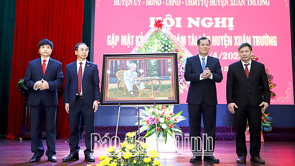Nhân dịp này, thay mặt Tỉnh ủy, HĐND, UBND tỉnh, đồng chí Phó Bí thư Thường trực Tỉnh ủy Lê Quốc Chỉnh đã trao tặng lẵng hoa tươi thắm và bức ảnh chân dung Chủ tịch Hồ Chí Minh cho Đảng bộ, chính quyền và nhân dân huyện Xuân Trường./.
