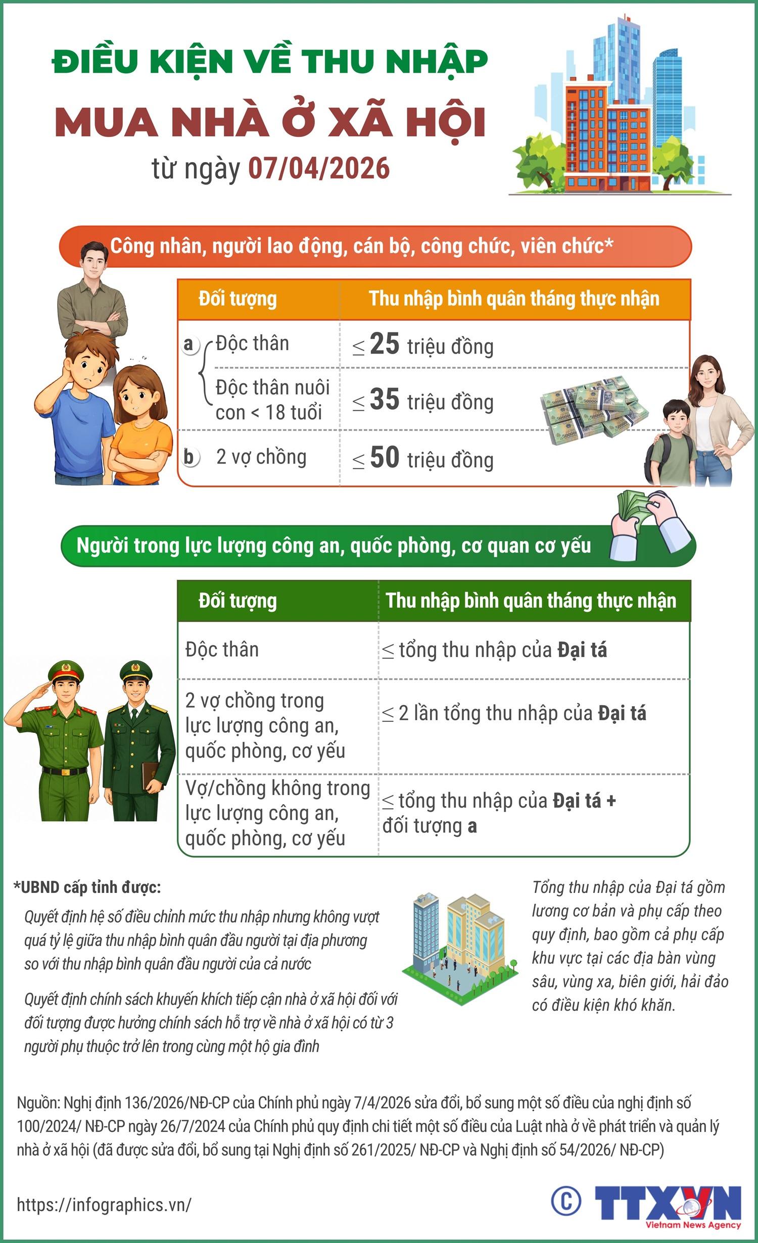 Điều kiện về thu nhập mua nhà ở xã hội từ ngày 7/4/2026