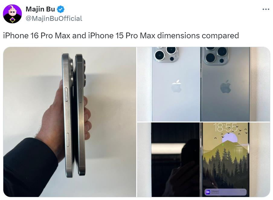 iPhone 16 Pro Max lớn hơn không đáng kể so với iPhone 15 Pro Max. Ảnh: Majin Bu/ X