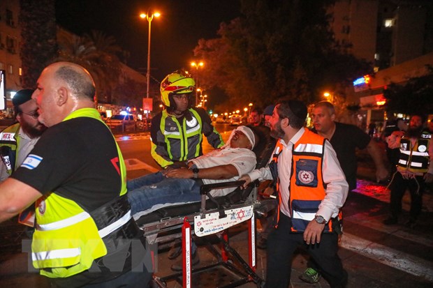 Chuyển nạn nhân bị thương sau một cuộc tấn công bằng rocket từ Dải Gaza, tại thành phố Holon, miền nam Tel Aviv, Israel, ngày 11/5/2021. (Ảnh: THX/TTXVN)