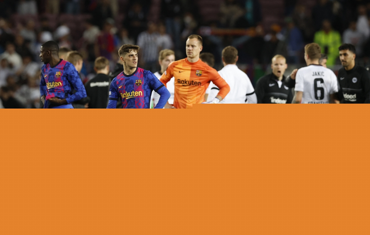 Frankfurt sớm mở tỷ số ngay phút thứ 4 với cú sút phạt đền của Filip Kostic, sau tình huống Eric Garcia phạm lỗi với Jesper Lindstrom trong vòng cấm Barca. Khi đội chủ nhà còn đang loay hoay tìm bàn gỡ thì Rafael Borre đã khiến sân Nou Camp chết lặng với pha “nã đại bác” để nâng tỷ số lên 2-0 ở phút 36.