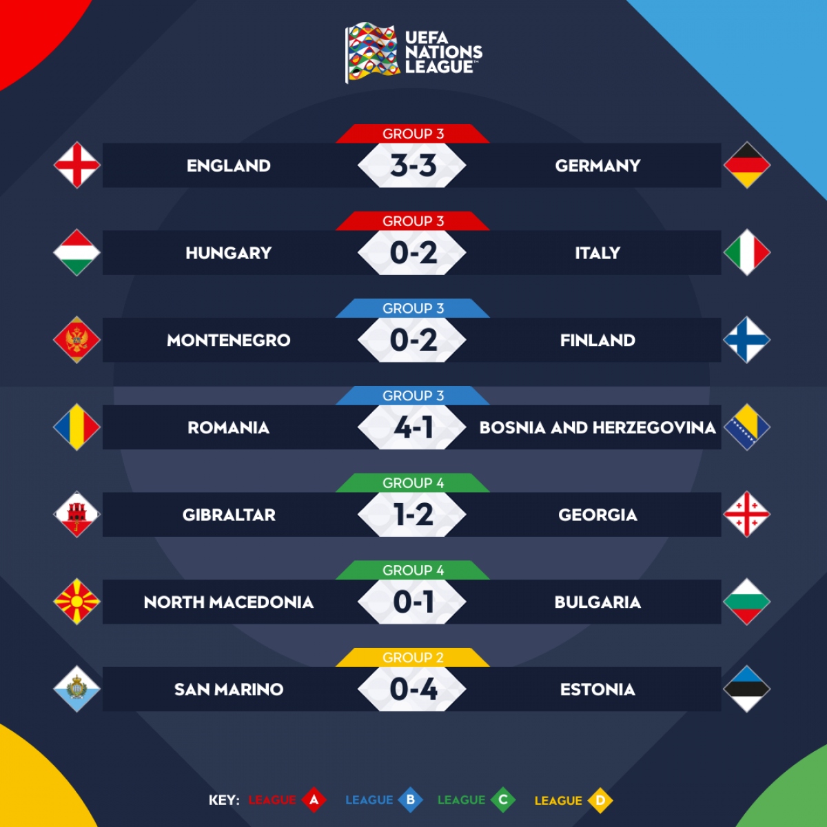 Kết quả này giúp Italia vươn lên chiếm ngôi đầu bảng A3 với 11 điểm, còn Hungary ngậm ngùi đứng nhì bảng với 10 điểm. Italia trở thành đội bóng thứ 3 góp mặt tại VCK Nations League mùa này sau Croatia và Hà Lan.