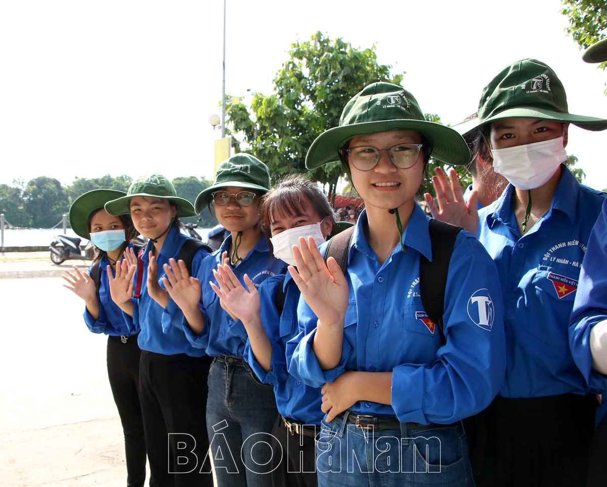 Các tình nguyện viên chờ sẵn ở cổng chào đón thí sinh hoàn thành môn thi cuối cùng ở điểm thi THPT Lý Nhân.