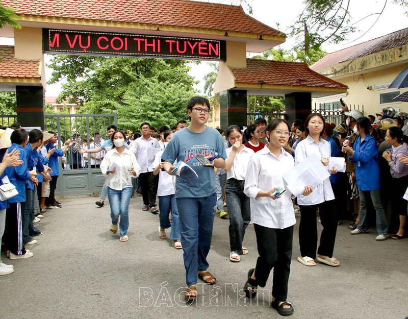 Một nhóm học sinh trường THCS Trần Quốc Toản và học sinh trường THPT Chuyên Biên Hòa dự thi tại điểm thi THPT A Phủ Lý cũng có nhận xét tương tự về đề thi này. Thí sinh Nguyễn Phương Linh phấn khởi nói: “Con vui lắm, hai môn con cảm thấy căng thẳng nhất khi bước chân vào kỳ thi này là Toán và Văn thì giờ đã qua, đề khá dễ chịu. Mọi áp lực dường như đã được giải tỏa. Chỉ còn môn thi Tiếng Anh chiều nay, con sẽ cố gắng làm tốt.”
